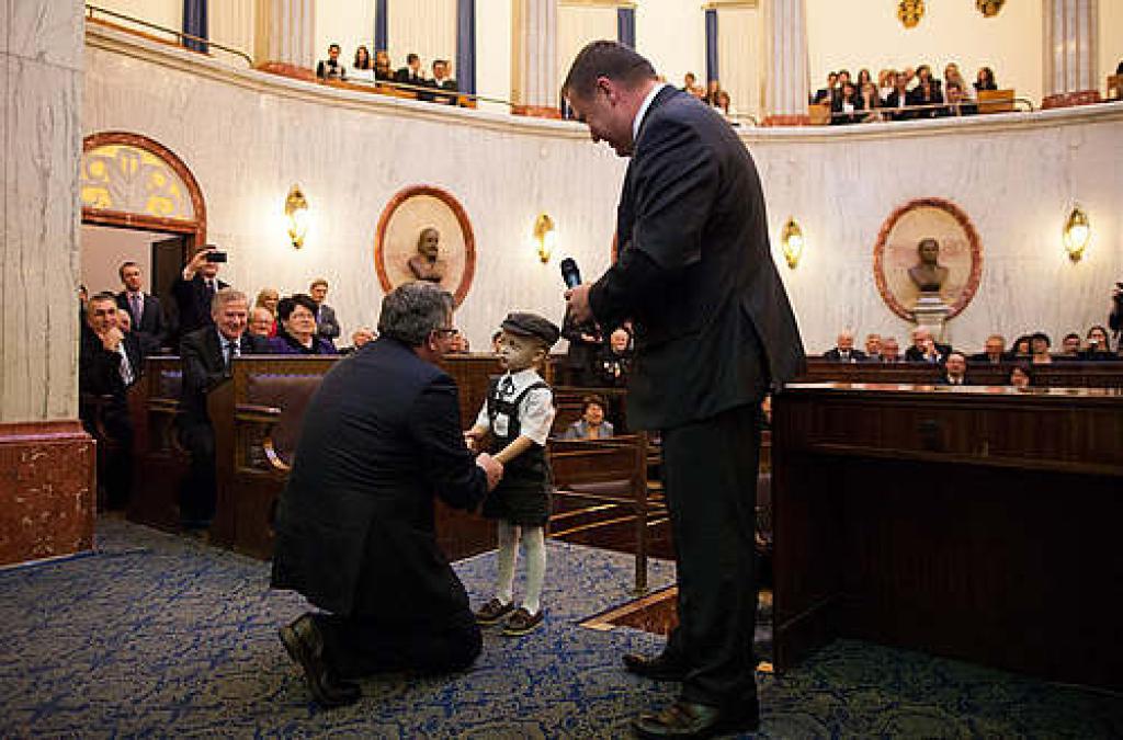 W gmachu Sejmu Śląskiego prezydenta przywitał m.in. 4-letni Mikołaj Dziedzic spod Pszczyny - zdobywca tytułu Młodzieżowego Ślązaka Roku w tegorocznym konkursie gwary śląskiej "Po naszymu, czyli po śląsku". Wygłoszony przez niego w gwarze monolog o tym, jak różni członkowie rodziny radzą mu, kim powinien zostać w przyszłości, rozbawił zgromadzonych.