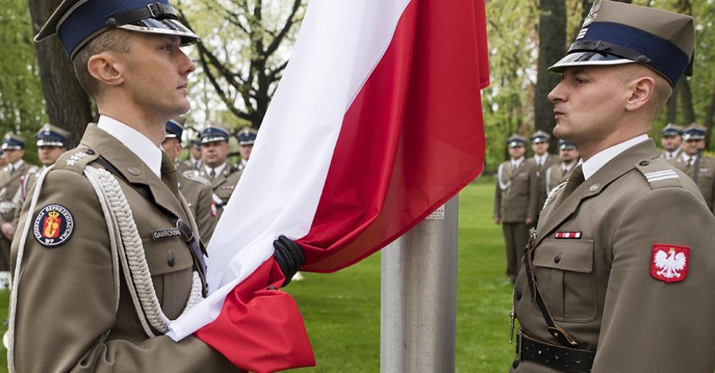 Uroczyste podniesienie flagi przed Kancelarią Premiera