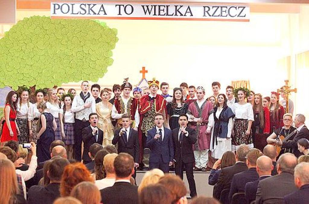Para Prezydencka obejrzała przygotowany przez uczniów program artystyczny z okazji 1050. rocznicy chrztu Polski „Polska to wielka rzecz”. W spotkaniu uczestniczył także Szef Gabinetu Prezydenta RP minister Adam Kwiatkowski oraz Kapelan Prezydenta RP ks. Zbigniew Kras.