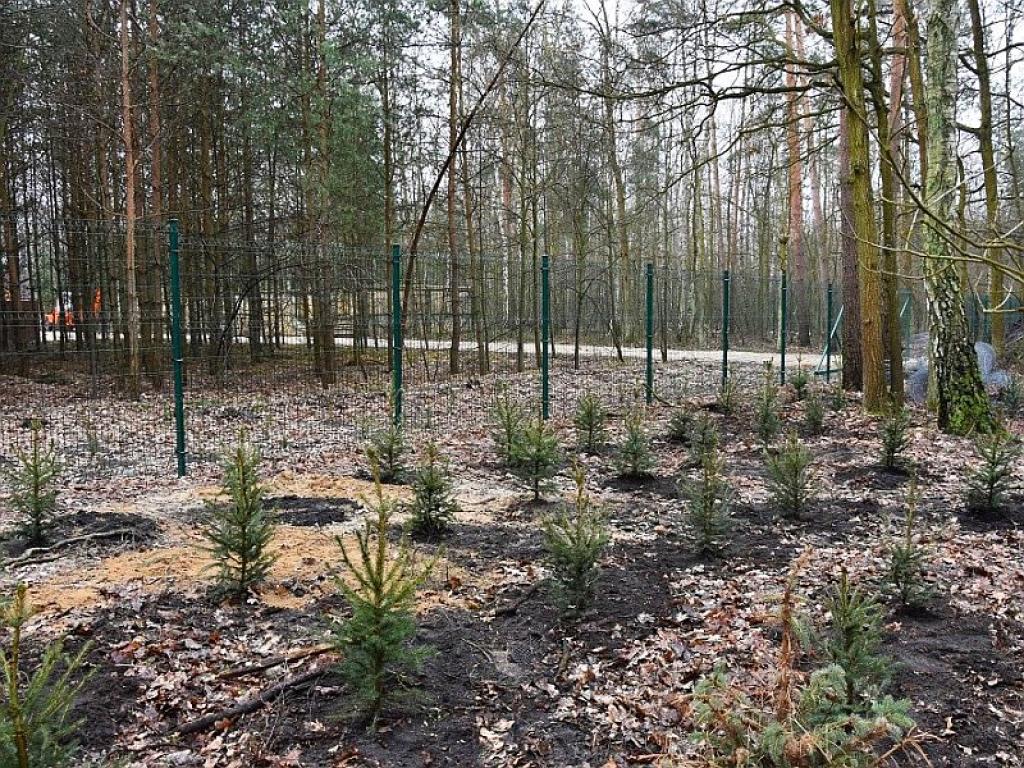 W lesie pojawiły się iglaki, głównie świerki. Wśród nich również drzewka, które zostały dostarczone przez warszawiaków w ramach poświątecznej zbiórki.